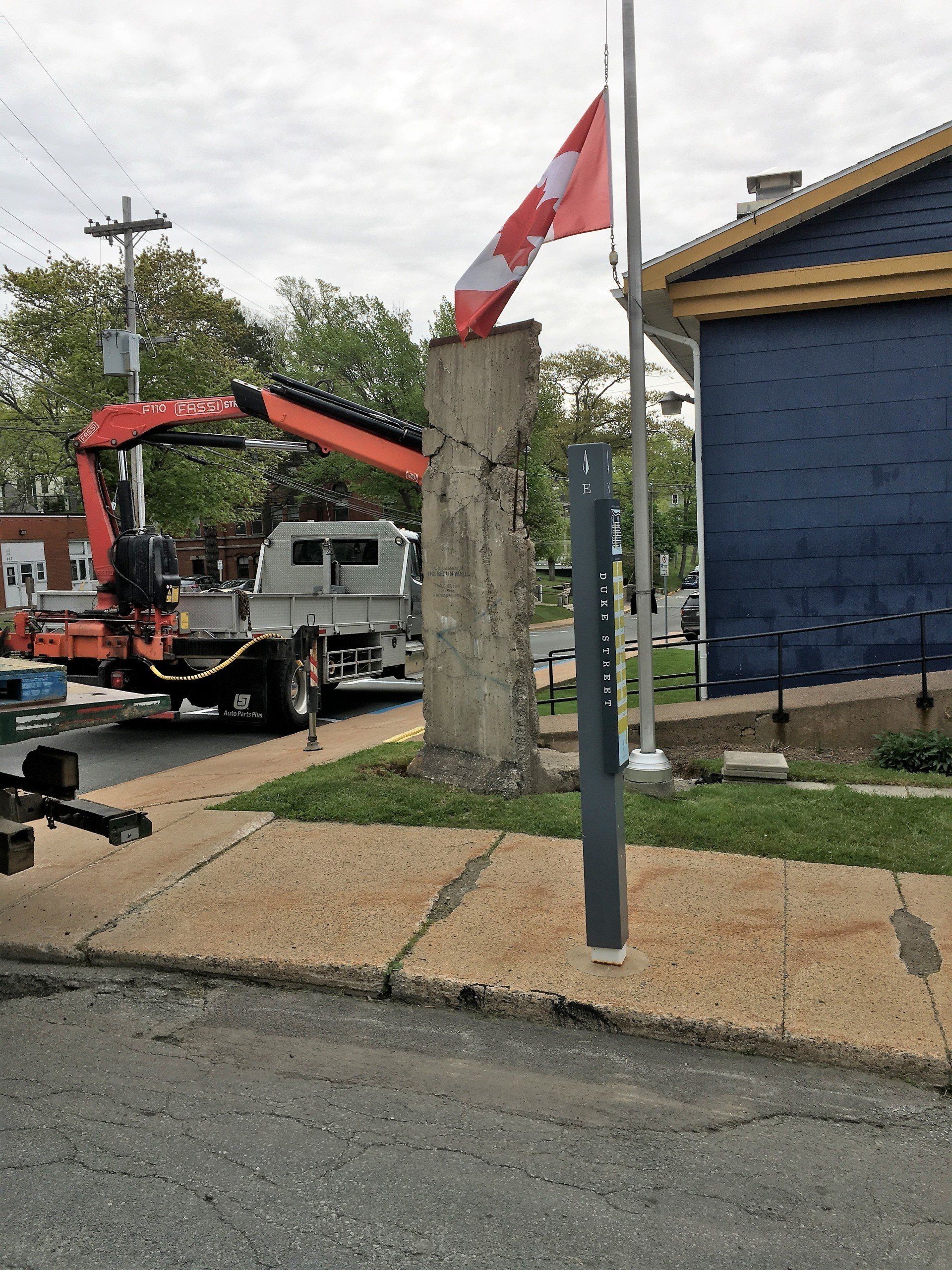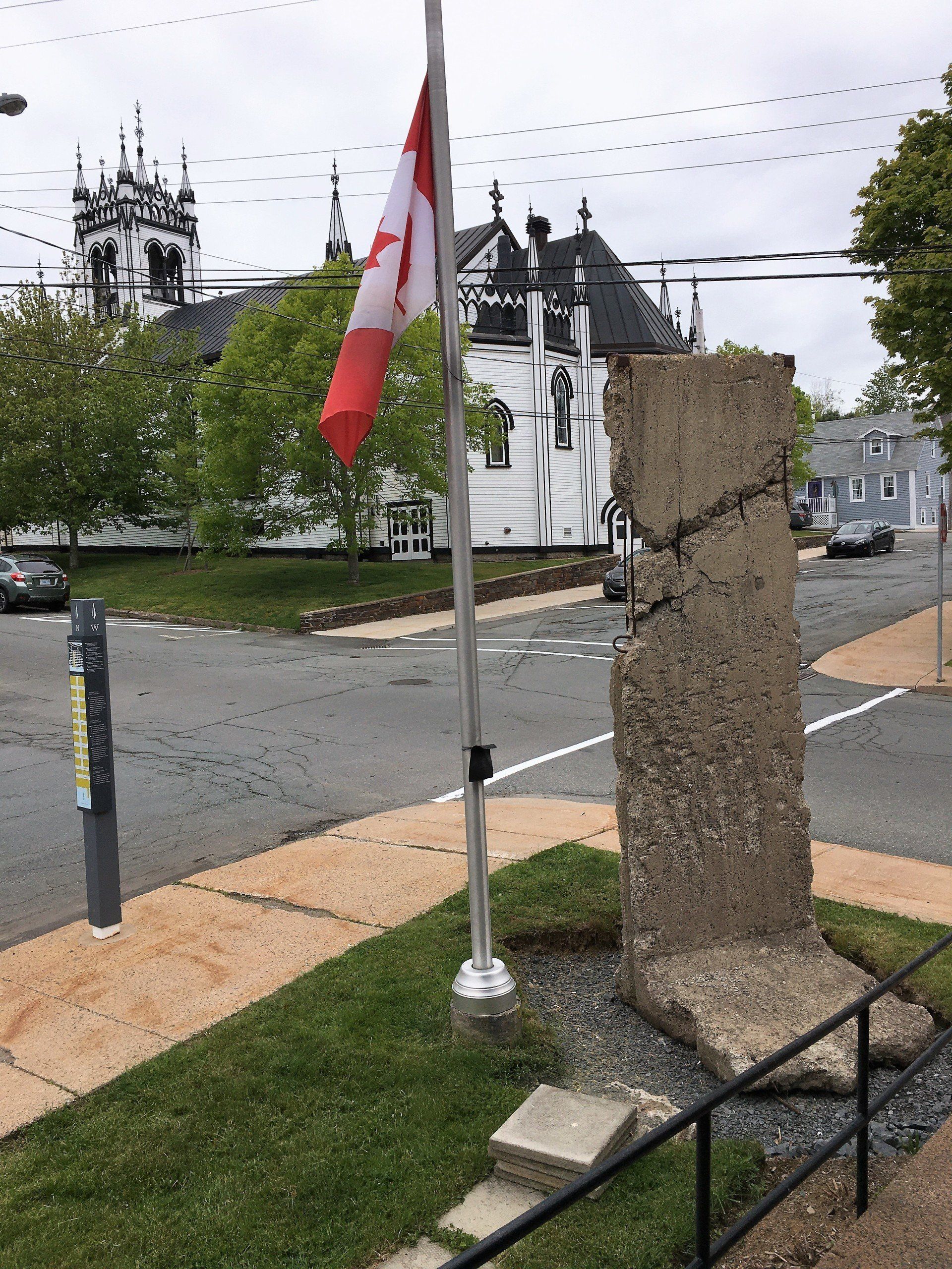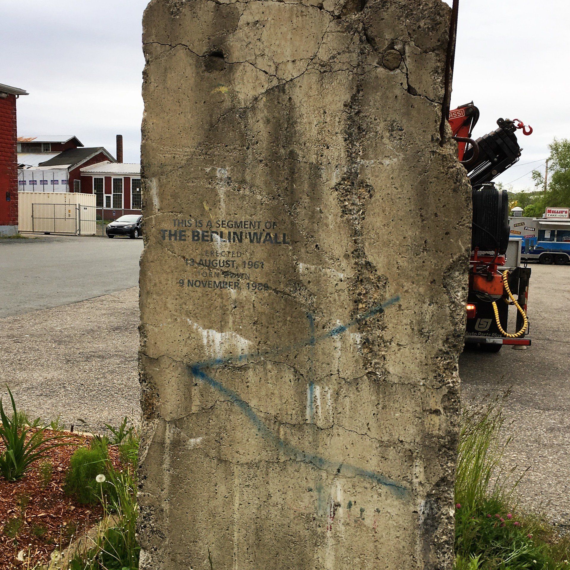 James J Kinley brought a segment of the Berlin Wall to Lunenburg in the late nineties and put on display at the entrance to Lunenburg Foundry.