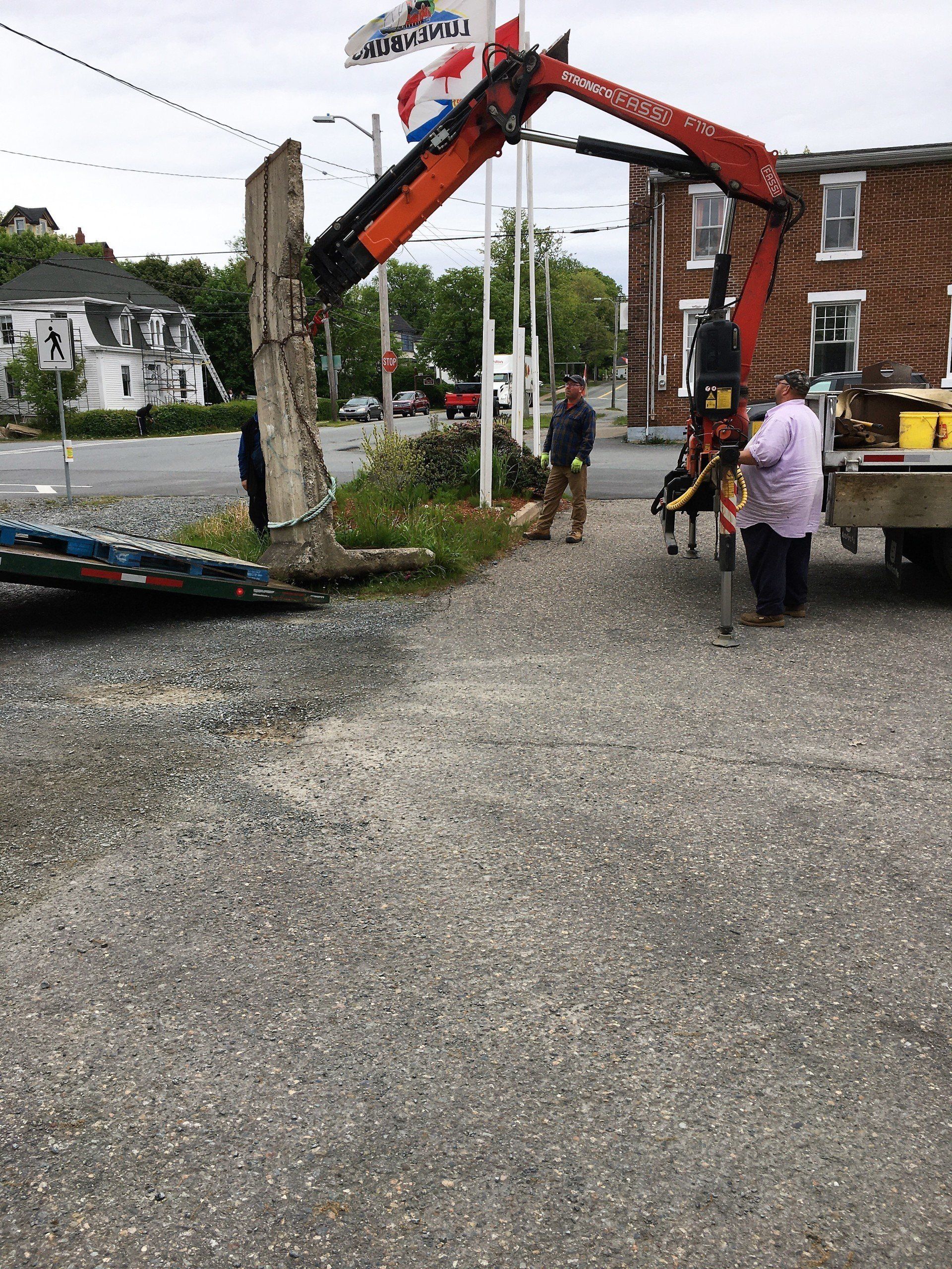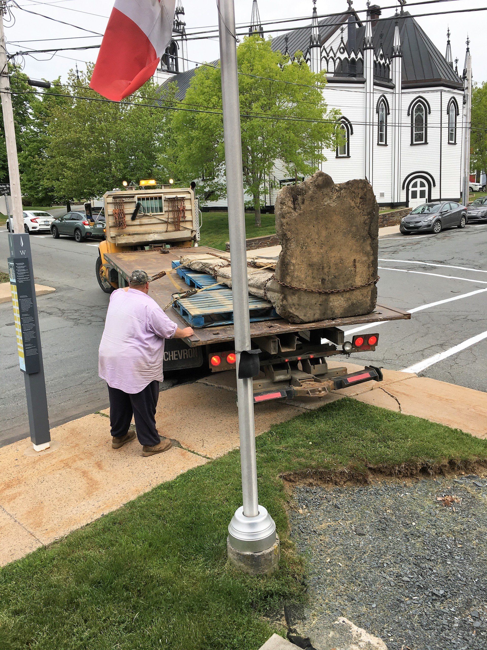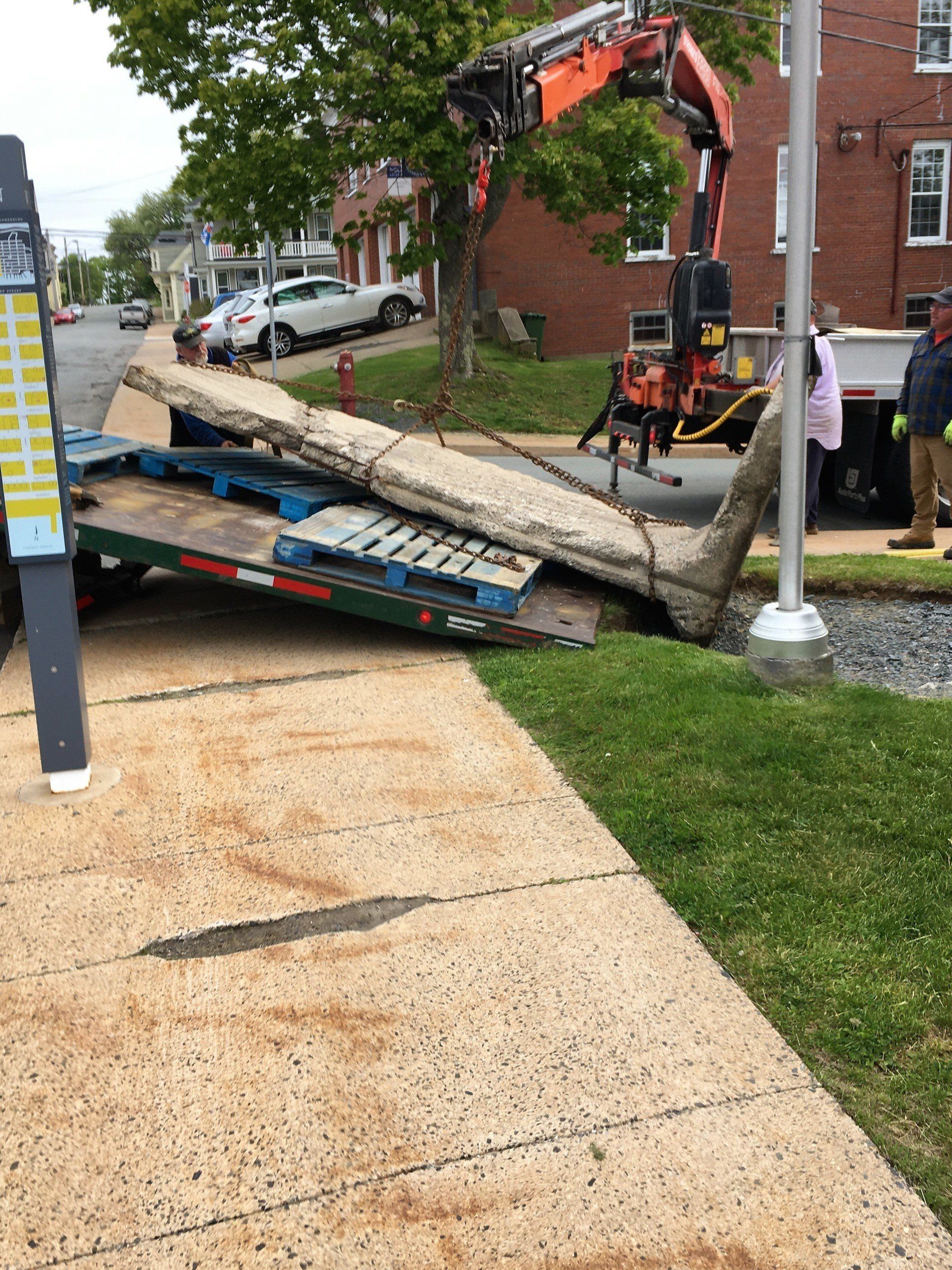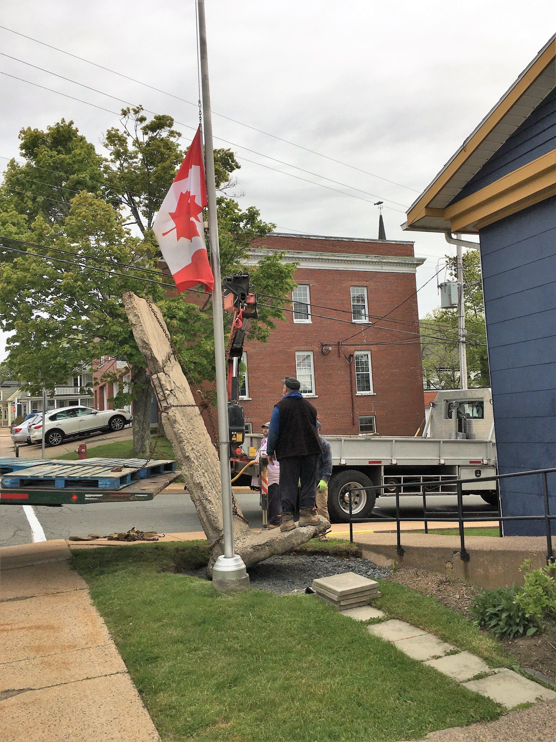 Yesterday, with the help of Demone Monuments, it was moved from the foundry to the front of the Lunenburg Legion where it can be viewed by residents and tourists.